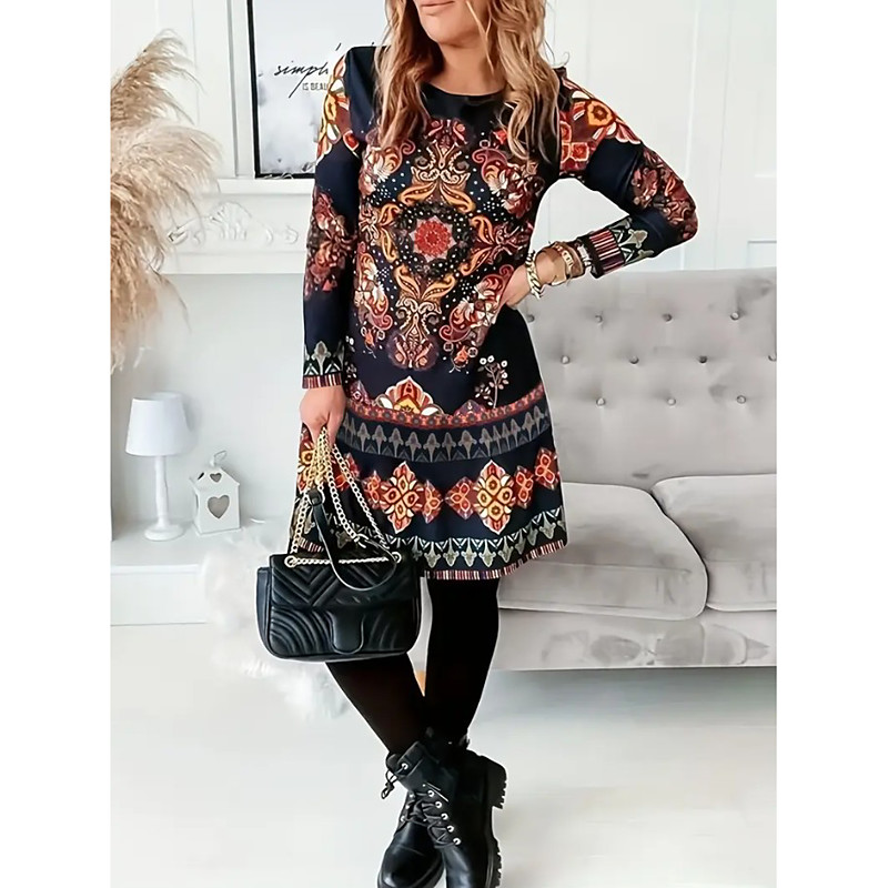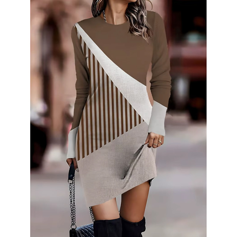 Women's Mini Dress Sweater Dress Shift Dress Party Casual Boho Holiday Going out Regular Fit Graphic Geometric Long Sleeve Crew Neck Blue Royal Blue Light Brown Sky Blue Spring Fall Winter