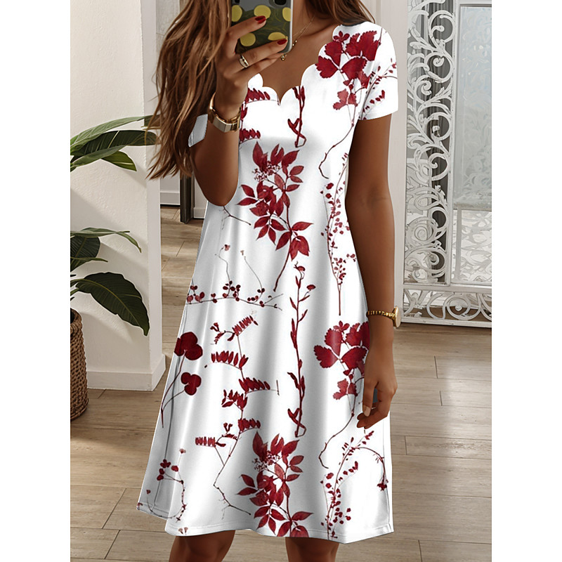 Women's Mini Dress T Shirt Dress Tee Dress A Line Dress Summer Dress Vacation Casual Daily Holiday Date Regular Fit Floral Graphic Animal Short Sleeve V Neck Yellow Red Blue Light Purple Summer Spring