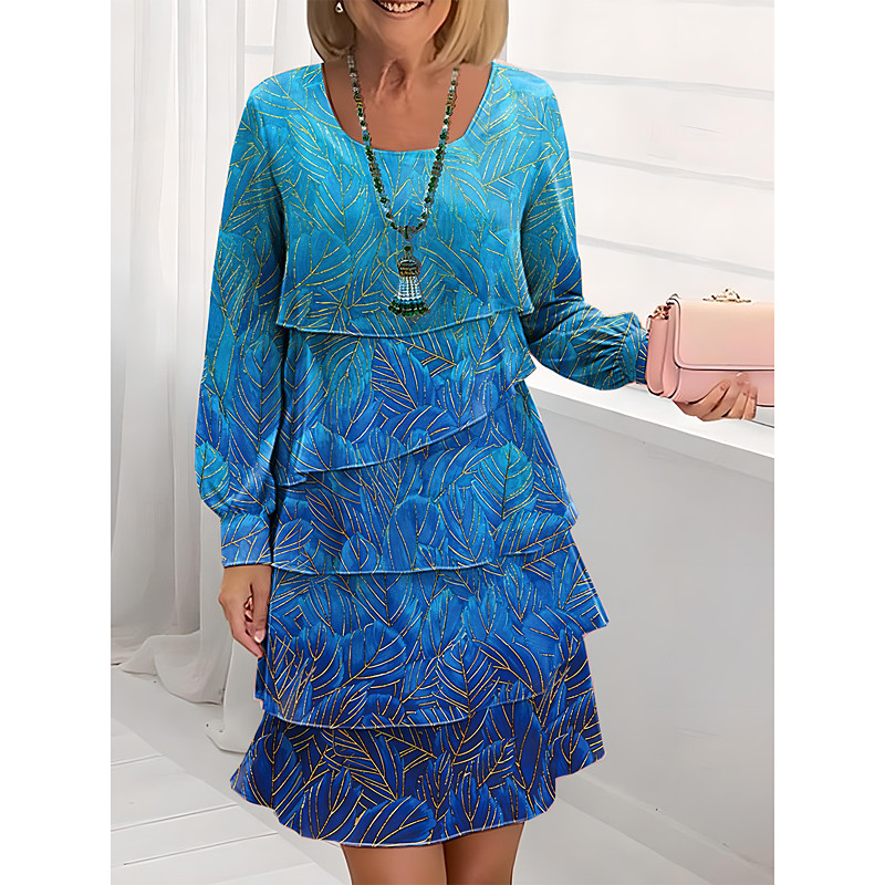 Women's Mini Dress Casual Dress Chiffon Dress Shift Dress Layered Dress Elegant Regular Fit Floral Long Sleeve Crew Neck Scoop Neck Blue Summer Spring Fall Winter