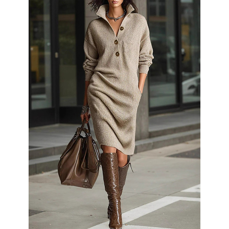 Women's Midi Dress Sweater Dress Sheath Dress Shift Dress Party Formal Semi Formal Formal Christmas Outdoor Loose Fit Plain Long Sleeve Lapel Black Yellow Red Brown Spring Fall Winter