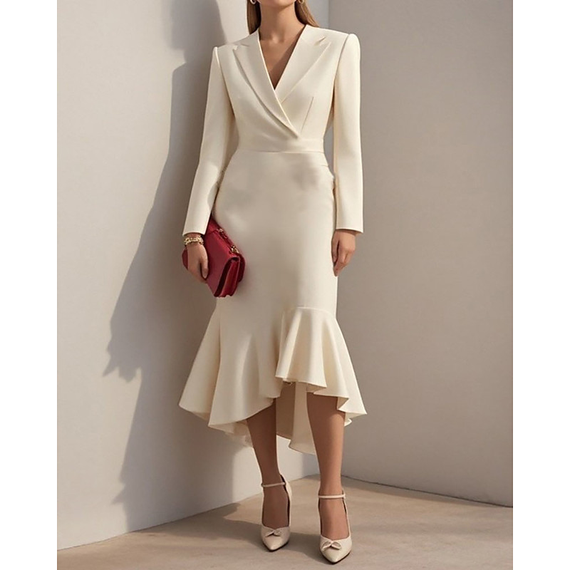 Women's Midi Dress Blazer Dress Sheath Dress Elegant Fashion Modern Office Daily Holiday Regular Fit Plain Long Sleeve Shirt Collar Black White Apricot Spring Fall Winter