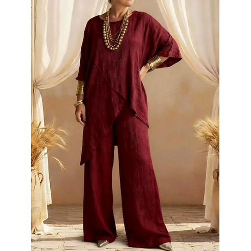 Per donna Set da due pezzi Set di Pantaloni Finto cotone e lino Manica Lunga Girocollo Semplice Moda Streetwear Casuale Quotidiano All'aperto Nero Bianco Giallo Estate Vestibilità comoda