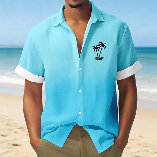 Per uomo Albero di Cocco Colore sfumato Piante Tropicali Camicia hawaiana estiva Camicia con Bottoni Camicia Aloha Manica Corta Hawaiano Vacanza Ferie Abbigliamento mare Estate Primavera Collo
