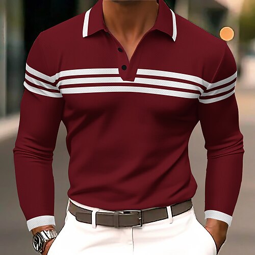 Herren Horizontale Streifen Polo Langarm Polo-Shirts Revers Business-Casual Athleisure Alltagskleidung 3D-Druck Knöpfe Frühling Herbst Schwarz Rote Grün