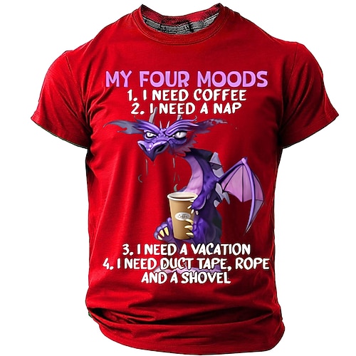 Herren Grafik Tiermotiv Drache T Shirt Kurzarm T-Shirt 3D-Druck Rundhalsausschnitt Hemd Designer Lässig Subkultur Sport im Freien Ferien Ausgehen Hellgrün Rote Burgunderrot Frühling Sommer