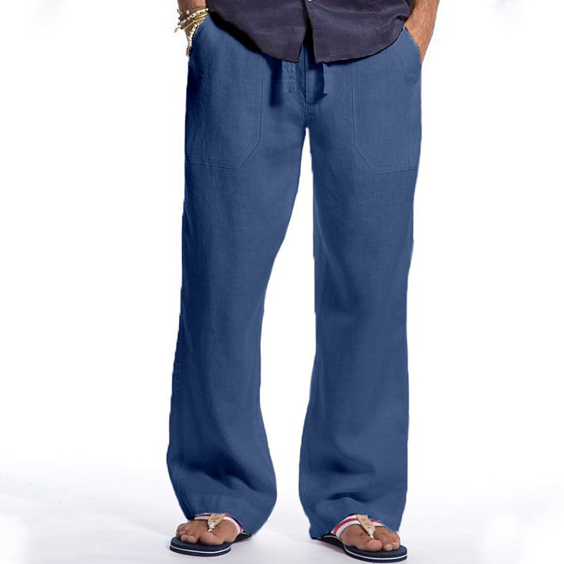 Men's Linen Pants Trousers Summer Pants Straight Leg Plain Comfort Breathable Full Length Casual Daily Beach Vacation Fashion Black White Inelastic