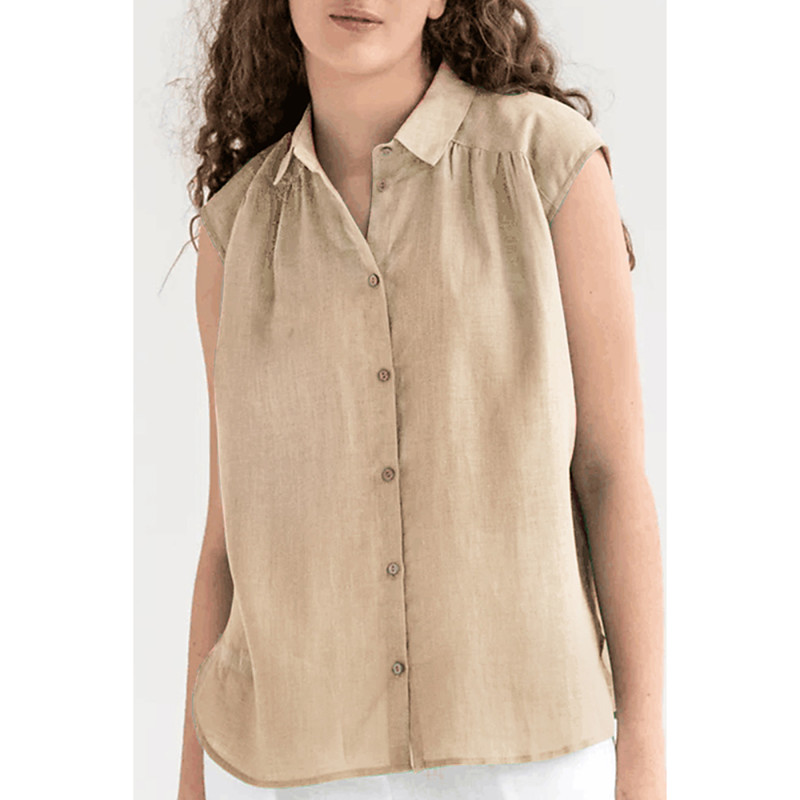 Women's Shirt Cotton Linen Vest Button Up Plain Basic Modern Sleeveless Shirt Collar Regular Tops Daily Going out Buttons Khaki Summer