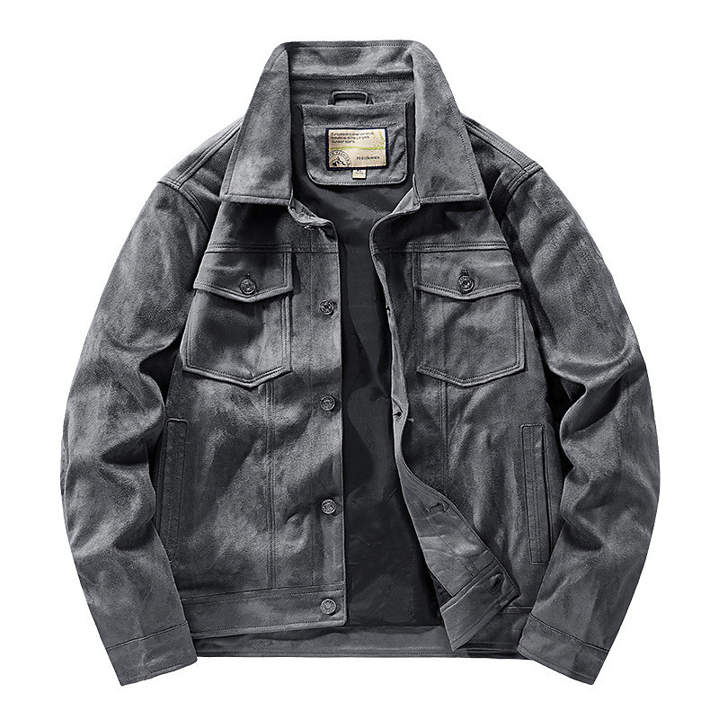 Men's Lightweight Jacket Faux Suede Jacket Vacation Daily Pocket Spring Fall Plain Fashion Classic Lapel Regular Black Khaki Coffee Gray Jacket