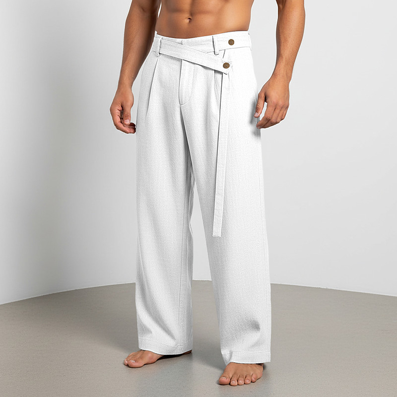 Men's Linen Pants Trousers Summer Pants Beach Pants Pocket Buttons Plain Comfort Breathable Vacation Daily Holiday Hawaiian Boho Black White