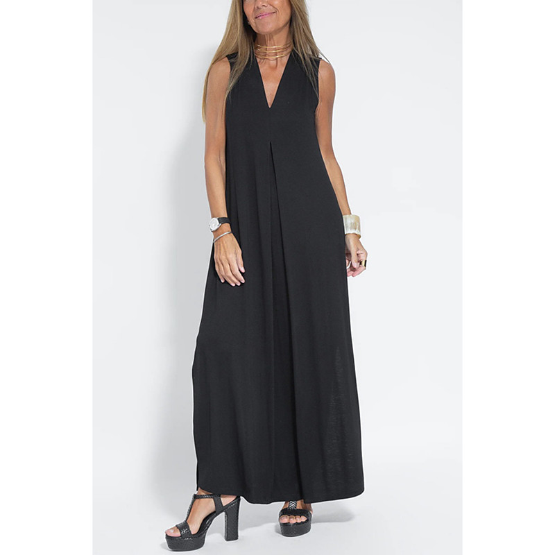 Women's Maxi Dress Summer Dress Casual Daily Loose Fit Plain Sleeveless V Neck Blue Black White Brown Summer
