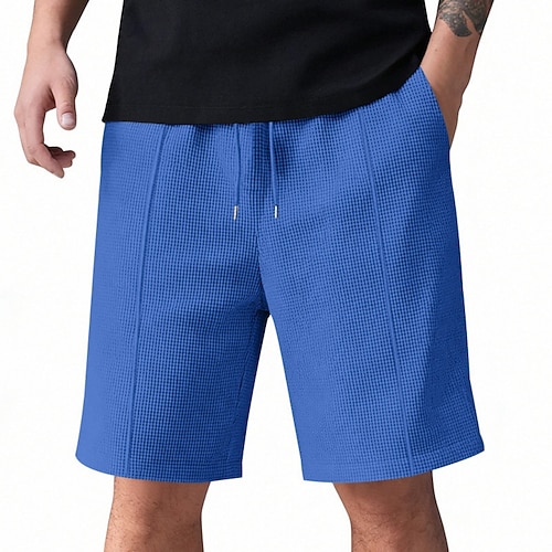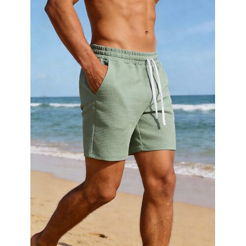 Per uomo Pantaloncini Waffle Shorts Pantaloncini casual Tasca Elastico in vita Tinta unita Comodità Traspirante Sopra il ginocchio Casuale All'aperto Spiaggia Vacanza Moda Nero Bianco Micro-elastico