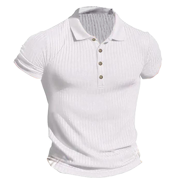 Men's Button Up Polos Business Polo Business Casual Ribbed Polo Collar Short Sleeve Fashion Basic Plain Classic Summer Regular Fit White Red Dark Blue Grey Light Blue Button Up Polos