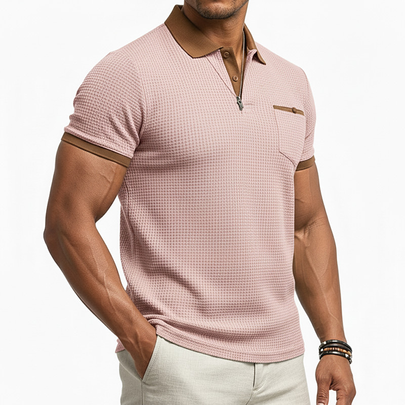 Men's Polo Shirt Golf Shirt Work Business Ribbed Polo Collar Classic Short Sleeve Basic Modern Solid Color Patchwork Button Spring Summer Regular Fit Light Green Light Red Blue Light Purple Khaki
