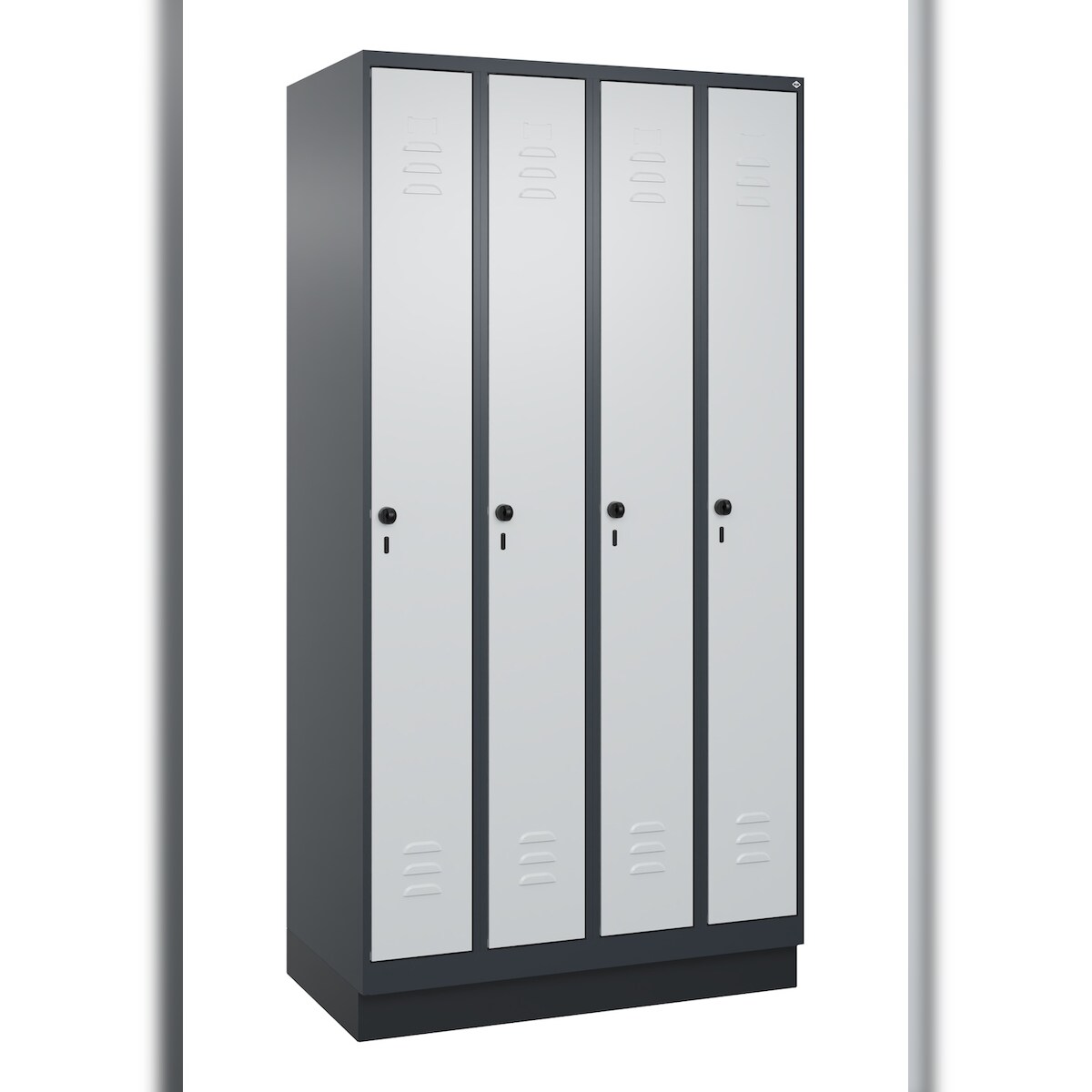 C+P Spind Classic PLUS, Sockel, 4 Abteile, HxBxT 195x100x50cm, Sicherheitsdrehriegel, Anthrazit/Hellgrau von PROREGAL