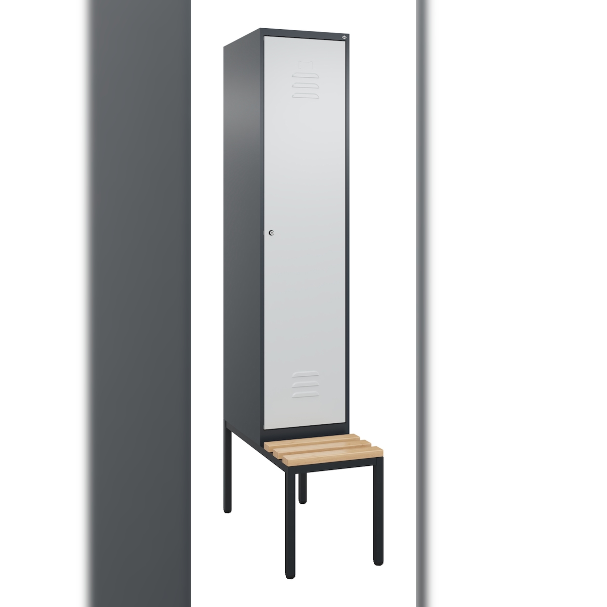 C+P Spind Classic PLUS, Buche untergebaute Sitzbank 1 Abteil, HxBxT 212x40x82cm, Zylinderschloss, Anthrazit/Hellgrau von PROREGAL