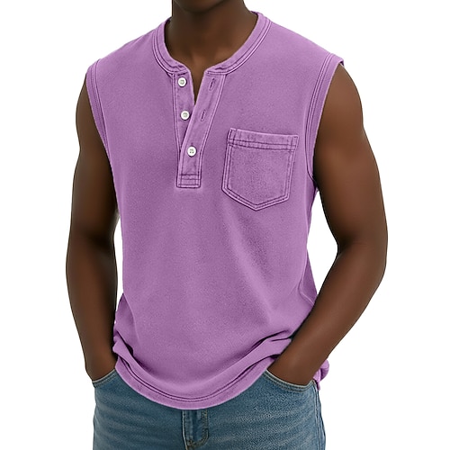 Herren Tank Top Weste Ärmelloses Shirt Ärmellos Henley Sommer Frühling Einfach Mode Designer Basic Tasche Vintage-Stil Knöpfe Urlaub Straße Alltagstauglich Schwarz Hellgrün Rosa Top T-Shirt für Herren