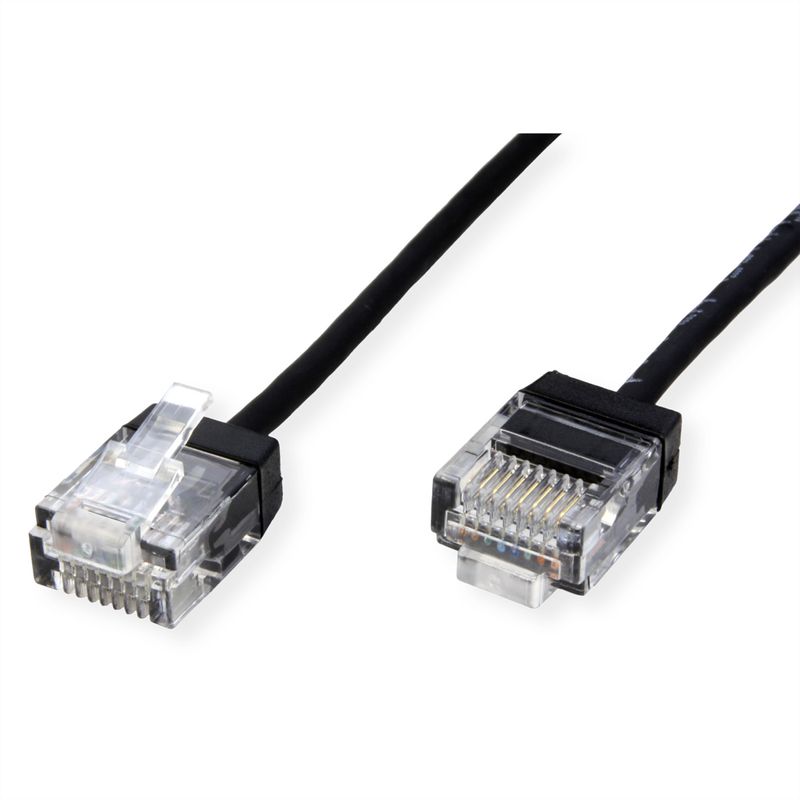 ROLINE UTP DataCenter Patchkabel Kat.6A (Class EA), LSOH, slim, extra kurzer Stecker, schwarz, 1,5 m