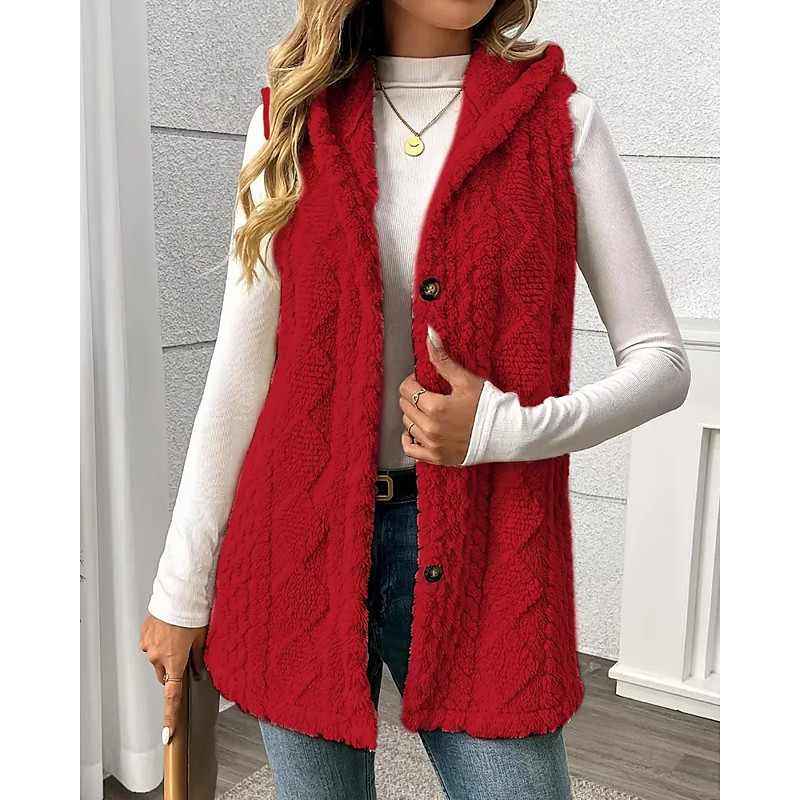 Women's Winter Coat Fleece Vest Vest Warm Comfortable Buttons Fashion Casual Solid Color Vacation Daily Wear Going out Weekend Regular Hooded Regular Fit Sleeveless Outerwear Black White Red Fall
