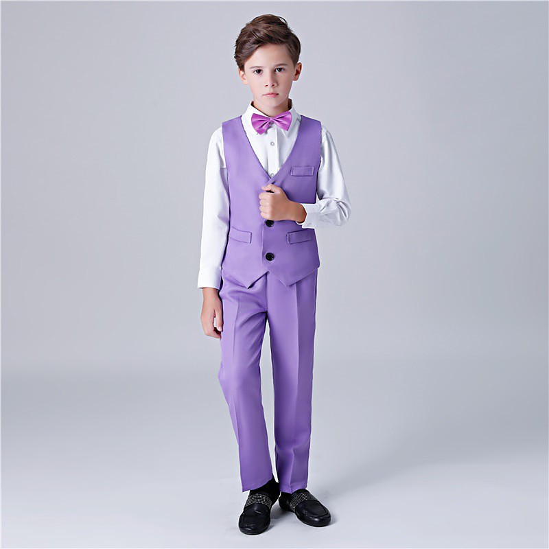 4 Pieces Ring Bearer Suit Boys' Kids Suit Blazer Vest Pants Tie Boy's Formal Suit Casual Outdoor Party Fashion Cool Basic Solid Color Pocket Buttons Blue White Wine Polyester