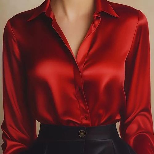 Per donna Camicia Blusa Semplice Moderno Casual Manica Lunga Colletto a Camicia Top Regolari Quotidiano Ferie Bottoni Vino Viola Marrone Autunno