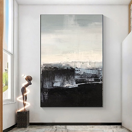 dipinto a olio fatto a mano su tela, decorazione da parete, figure astratte in bianco e nero, per arredamento di lusso, dipinto appeso con cornice allungata/dipinto arrotolato senza cornice