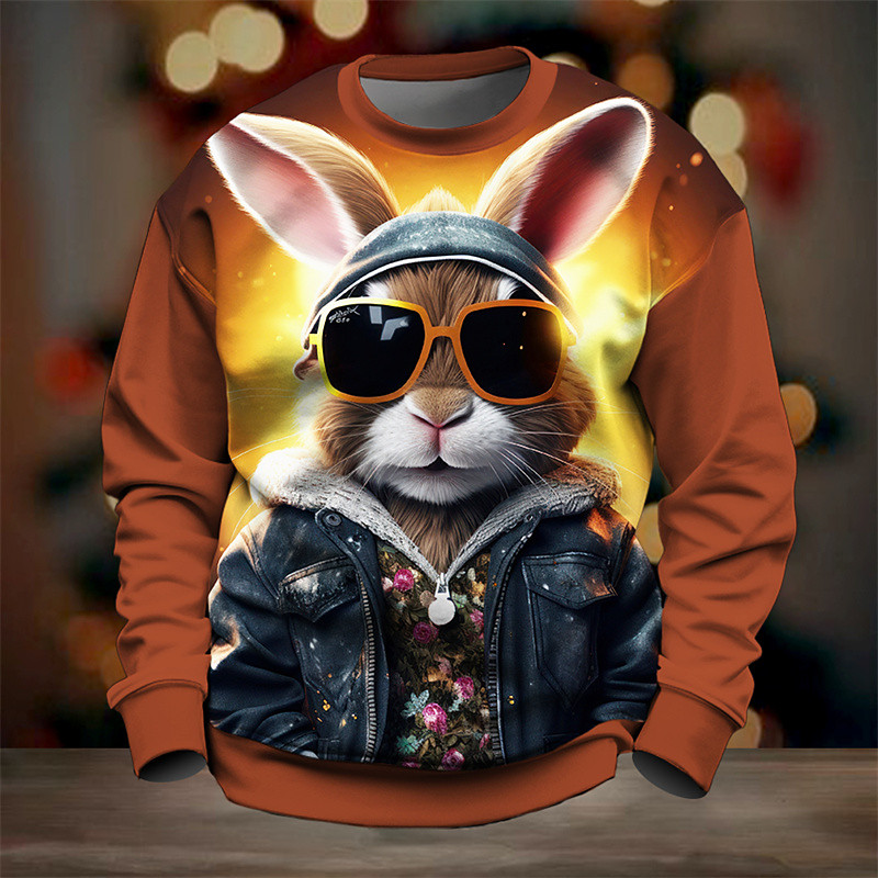 Men's Graphic Cartoon Rabbit Sweatshirts Golf Pullover Sweatshirt Long Sleeve Sweatshirt Crew Neck Fashion Daily Casual 3D Print Vacation Holiday Going out Print Spring Fall