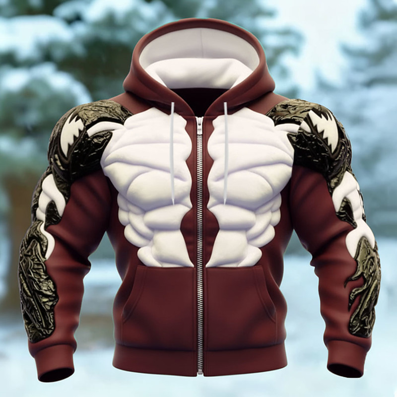 Men's Muscle Optical Illusion Hoodie Jacket Sweatshirt Viking 3D Fantasy All Over Print Long Sleeve Zip Streetwear Vacation Going out Blue Black Red Purple Green Zipper Fall Winter Designer S M L XL