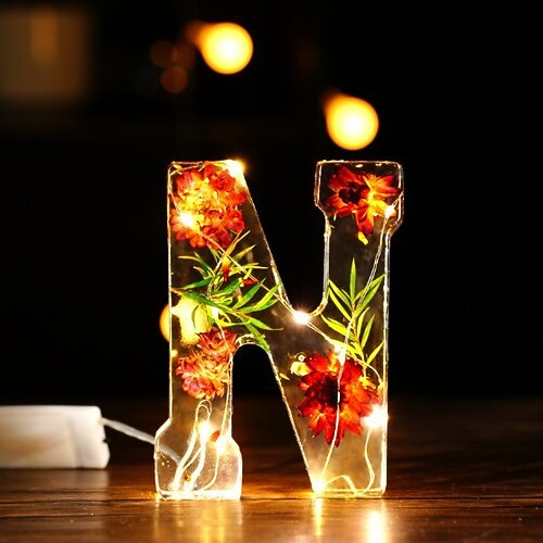 1 pz 11,5 cm 26 lettere luce notturna a led, luce calda per decorazione da tavolo a forma di fiore secco, luce ornamentale, luce decorativa per feste di compleanno, matrimonio, Halloween, Natale