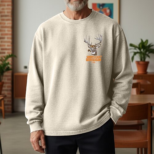 Per uomo Maglia Felpa con cappuccio invecchiata Aalbicocca Nero Rosa Verde militare Marrone Girocollo Renna Stampato Quotidiano Ferie Uscire 100% Cotone Vintage Retrò Casual Autunno Inverno