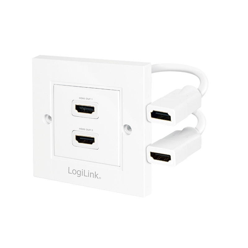 LogiLink HDMI Wanddose mit 2 fach mit HDMI Kabel 4K/30Hz weiß 0,18 m (1er Faltschachtel)