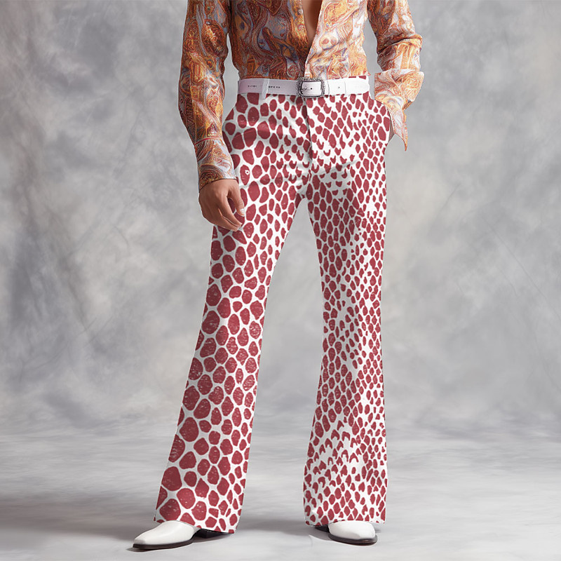 Men's Geometric Abstract Art Disco Pants 60s 70s Bell Bottoms Mid Waist Vintage Retro Outdoor Vacation Party Side Pockets Flared Leg Pants Trousers Spring Fall 3D Print Black And White White Red