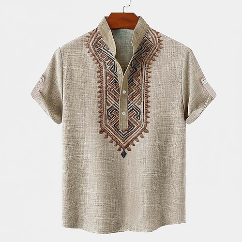Per uomo Mimetico Renna Camicia Camicia con Bottoni Manica Lunga Vintage Retrò All'aperto Campeggio Escursionismo Caccia Primavera Autunno Collo ripiegato Stampa 3D Camicia tipo lino Nero Marrone