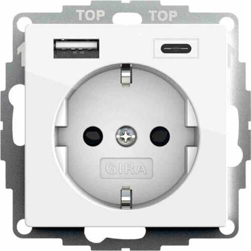 Gira System 55 Steckdose, 1f, reinweiß, glänzend, 1USB-A, 1USB-C, Unterputz, mit erhöhtem Berührungsschutz, Steckdose CEE 7/3 (Typ F), IP20, 245903
