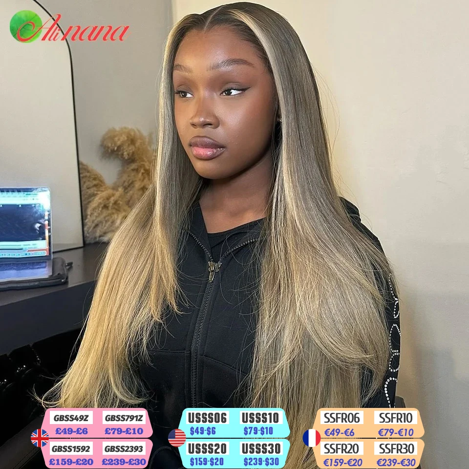 Brazilian Unprocessed Virgin Hair Glueless 5x5 Lace Closure Wigs 13x4 Lace Front Human Hair Wig Hair Straight Highlight Ash Blonde Human Hair Wig Pre-Plucked