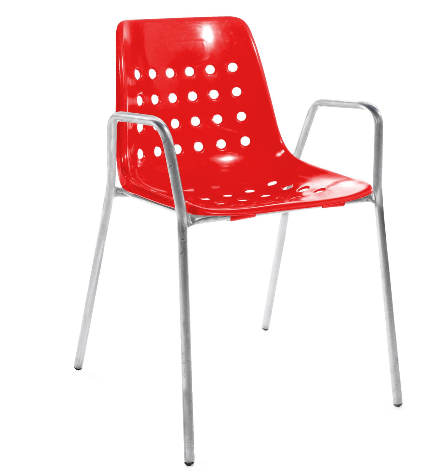 Schaffner Schalen-Stuhl Bermuda mit Armlehne Rundrohr Feuerverzinkt Rot | Schubiger Möbel