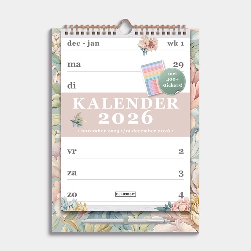 Spiraalkalender A4 2026 Vintage Pioenrozen