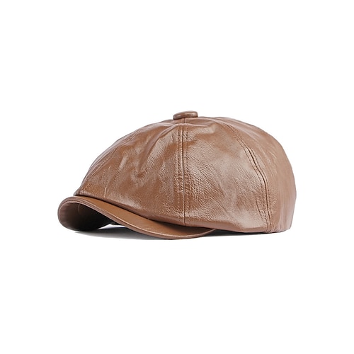 berretto natalizio da uomo in similpelle – elegante berretto piatto rosso, marrone, nero e grigio – caldo cappello invernale da uomo – accessorio alla moda per le feste natalizie