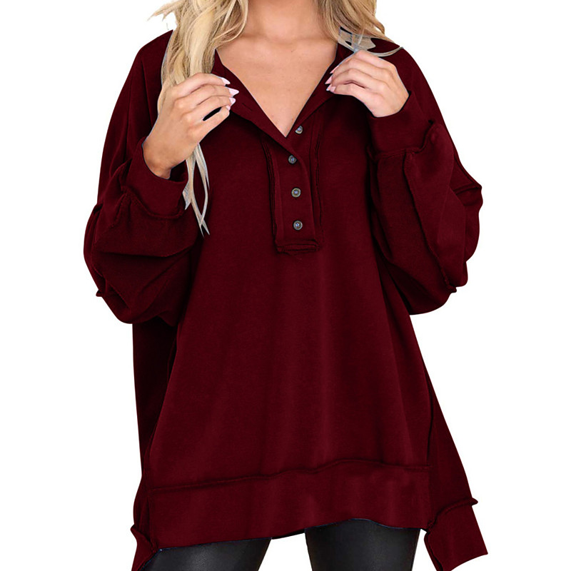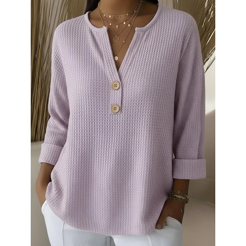 Women's Blouse Plain Modern Casual Long Sleeve Crew Neck Regular Tops Daily Holiday Going out Buttons Black White Pink Wine Blue Fall