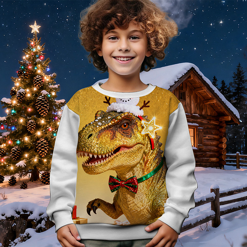 Christmas Boys' 3D Dinosaur Sweatshirt Long Sleeve Spring Fall Fashion Basic Kids 4-12 Years Crew Neck Outdoor Casual Daily Regular Fit