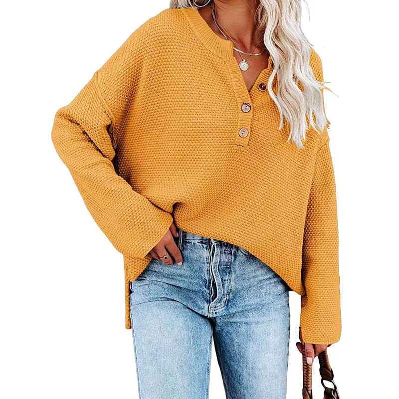 Women's Sweater Casual Soft Pure Color Ribbed Crew Neck Buttons Knitted Long Sleeve Regular Tops Knit Outdoor Daily Weekend Pink Fall Winter
