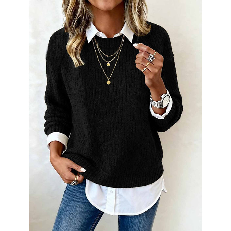 Women's Sweater Casual Soft Geometric Ribbed Crew Neck Knitted Long Sleeve Regular Tops Knit Outdoor Daily Weekend Black Yellow Fall Winter