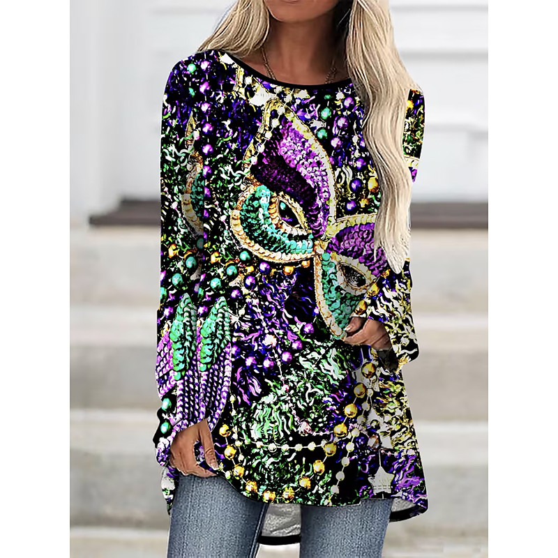 Carnival Women's T Shirt Graphic Abstract Vintage Stylish Classic Long Sleeve Crew Neck Round Neck Regular Tops Daily Print Purple Spring Fall