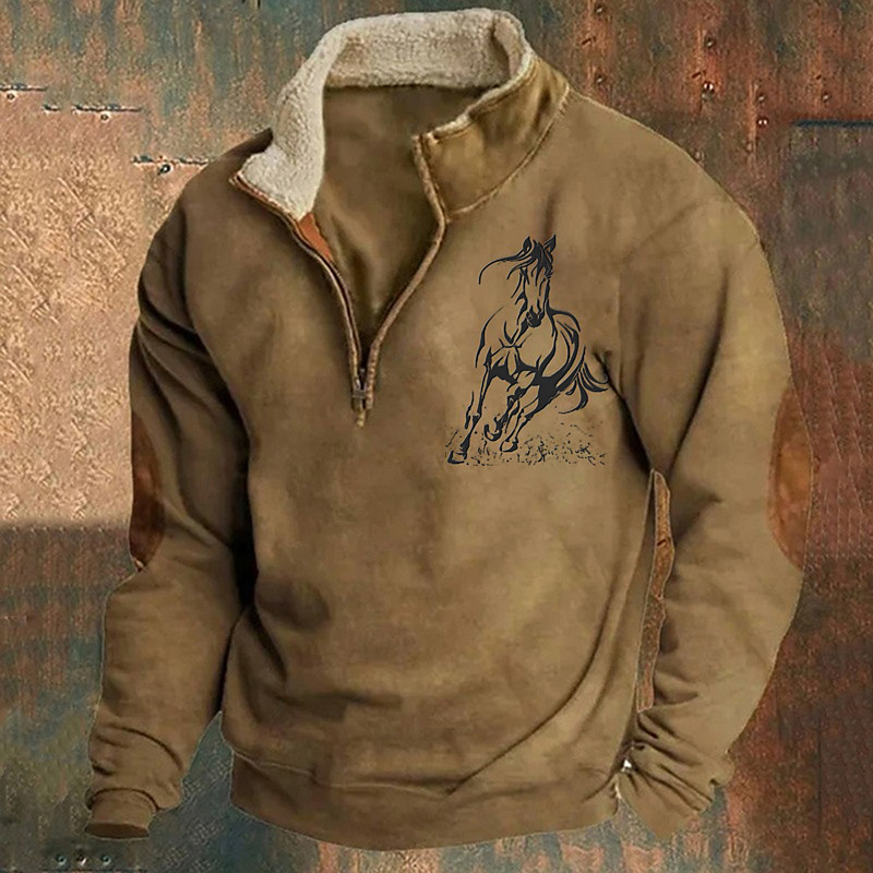 Men's Horse Waffle Sweatshirt Fashion Daily Classic Casual Stand Collar Outdoor Home Office Work Black Blue Purple Brown Green Zip Up Fall Winter Designer S M L XL XXL XXXL