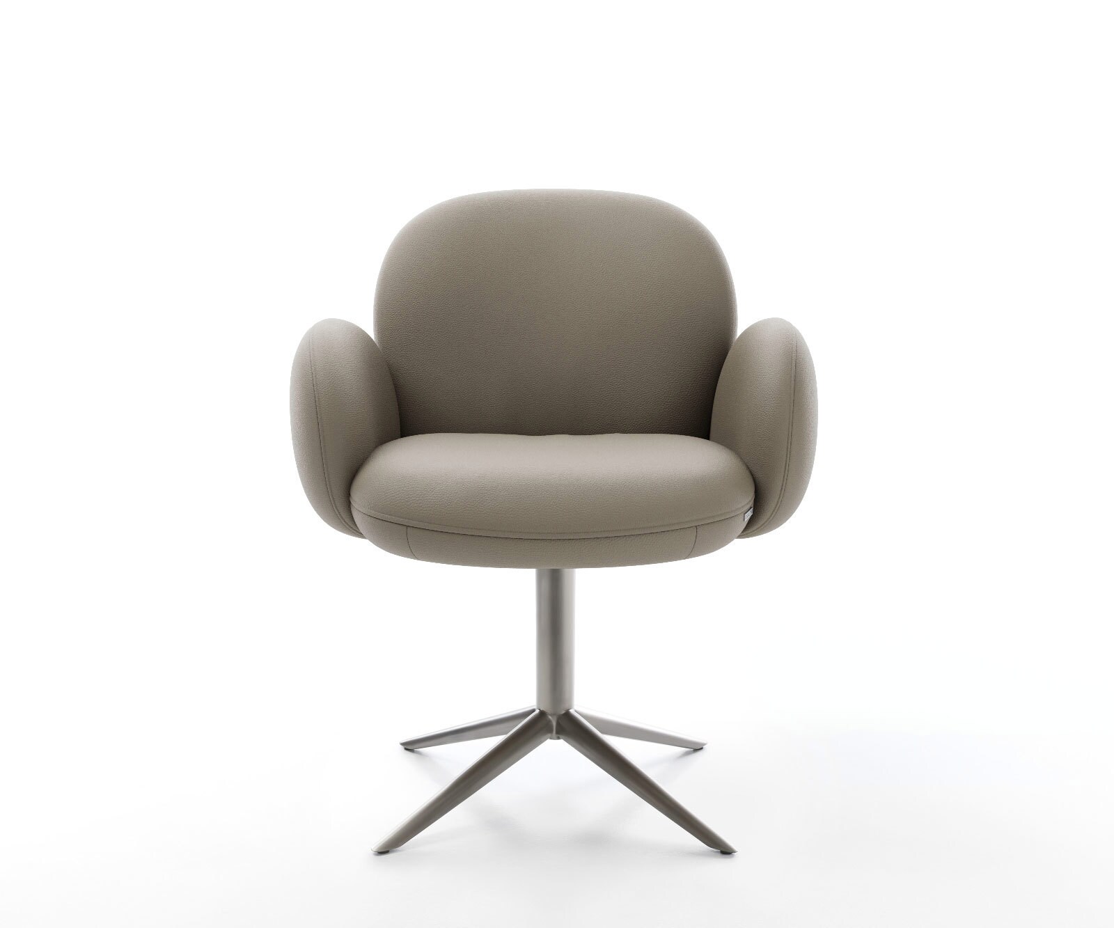 Chaise-pivotante Vinka-Flex avec accoudoirs cuir de vache couleur boue pied croisé large acier inoxydable brossé pivotement sur 360° ressorts ensachés