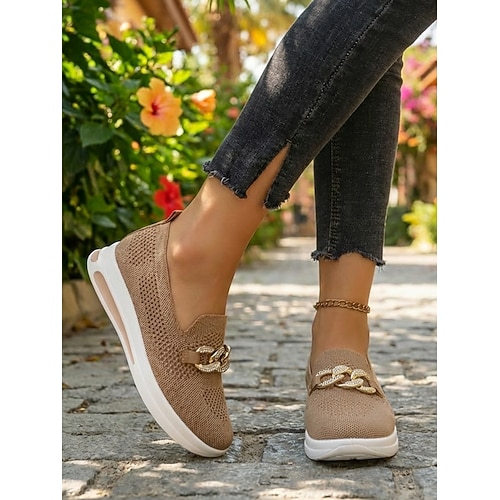 sneakers slip-on da donna con dettaglio a catena: scarpe da passeggio traspiranti e leggere per viaggi in resort, visite turistiche in città, uscite informali e comfort quotidiano