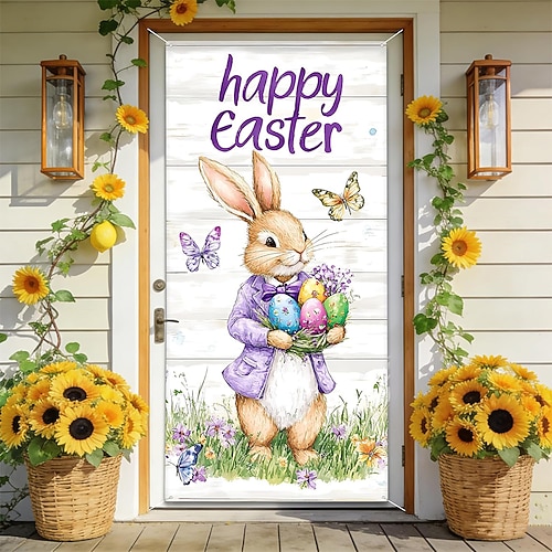Pasqua Poster Copertura della porta Banner per esterni Rabbit Carino 3D Da serata Dormitorio Stanza per adolescenti Dormitorio universitario Ragazzi Man Cave Frat Bedroom Sfondi di ripresa