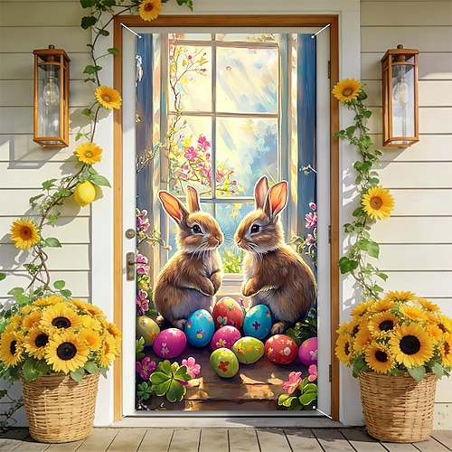 Pasqua Poster Copertura della porta Banner per esterni Rabbit Uova Carino 3D Da serata Dormitorio Stanza per adolescenti Dormitorio universitario Ragazzi Man Cave Frat Bedroom Sfondi di ripresa
