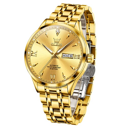 Il Nuovo Orologio da Business da Uomo Olevs con Cinturino in Acciaio Inossidabile Calendario Luminosa e Display del Giorno Orologio Meccanico Automatico Romani Semplice e Moda Impermeabile Orologio