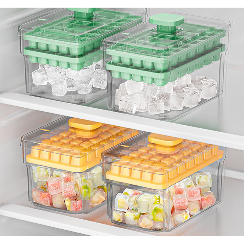 Ice Cube Tray with Lid Bin, Ice Cube Mold for Freezer,Ice Make for Whiskey Cocktail, Tea, Coffee(2 Trays, Container, Lid Ice Scoop)