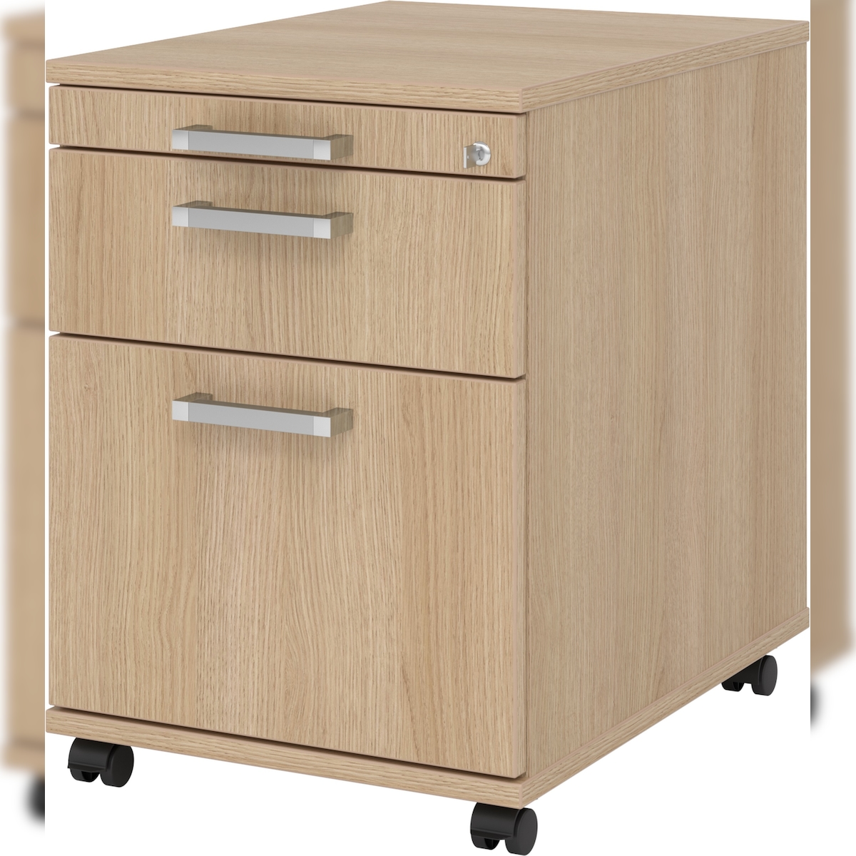 bümö Rollcontainer mit Hängeregistratur, Container abschließbar aus Holz in Eiche - Rollwagen für's Büro mit Hängeregister als Schreibtisch